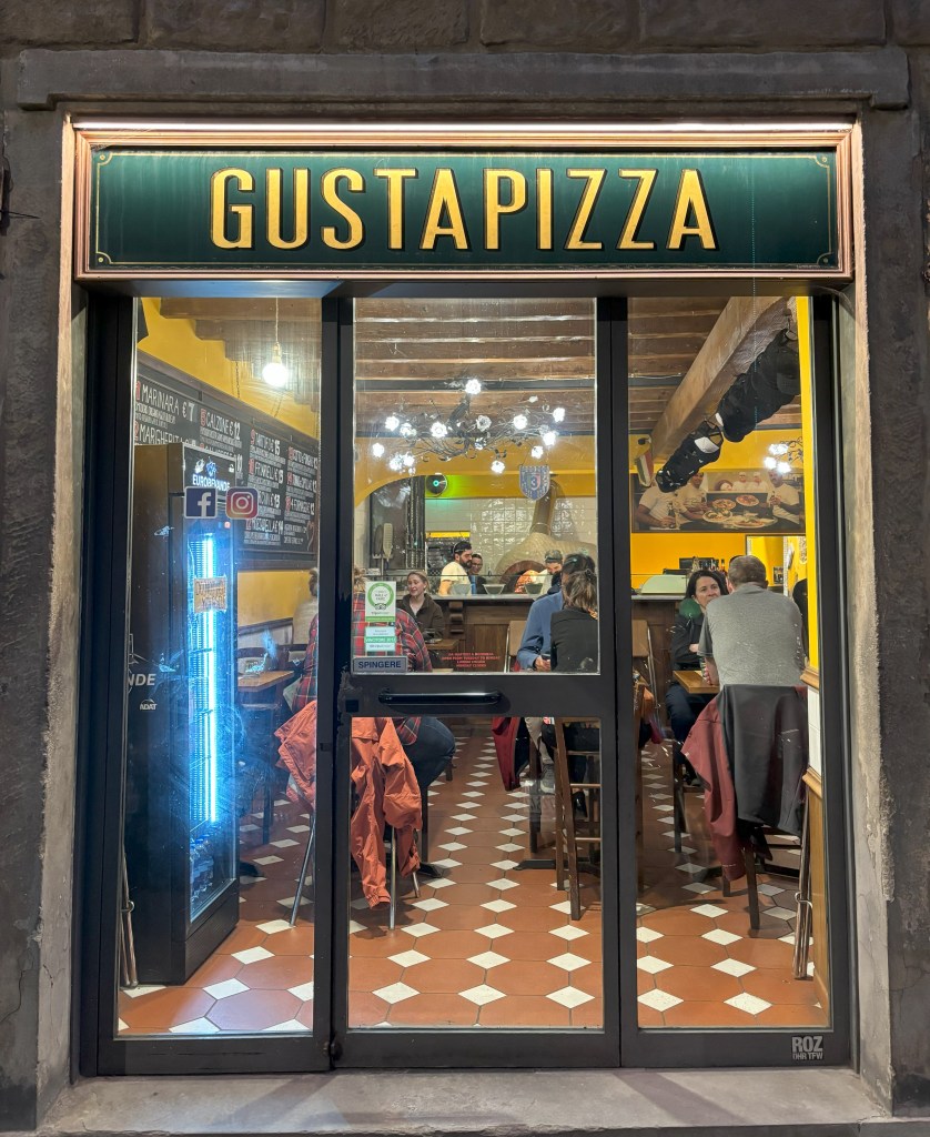 Burası Arno Nehri’ne oldukça yakın bir noktada olduğu için dilerseniz paket alıp nehir kenarında da yiyebilirsiniz. Oldukça tercih edilen bir restoran olduğu için masada oturmak için biraz sıra beklemek gerekebiliyor. Biz Pesto ve Gustapizza’yı birer kadeh kırmızı şarap eşliğinde tercih ettik ve çok lezzetli bir akşam yemeği olduğunu söyleyebilirim.