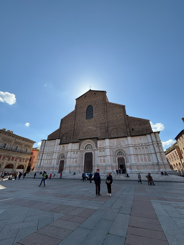 Piazza Maggiore’de bulunan bu bazilika dünyadaki en büyük bazilikalardan bir tanesi olarak biliniyor. Bilgilere göre Papa’nın bu kadar büyük bir yapıya izin vermemesi gibi sebepler nedeniyle henüz tamamlanmamış ve dışında henüz tamamlanmamış bir görüntü bulunuyor.