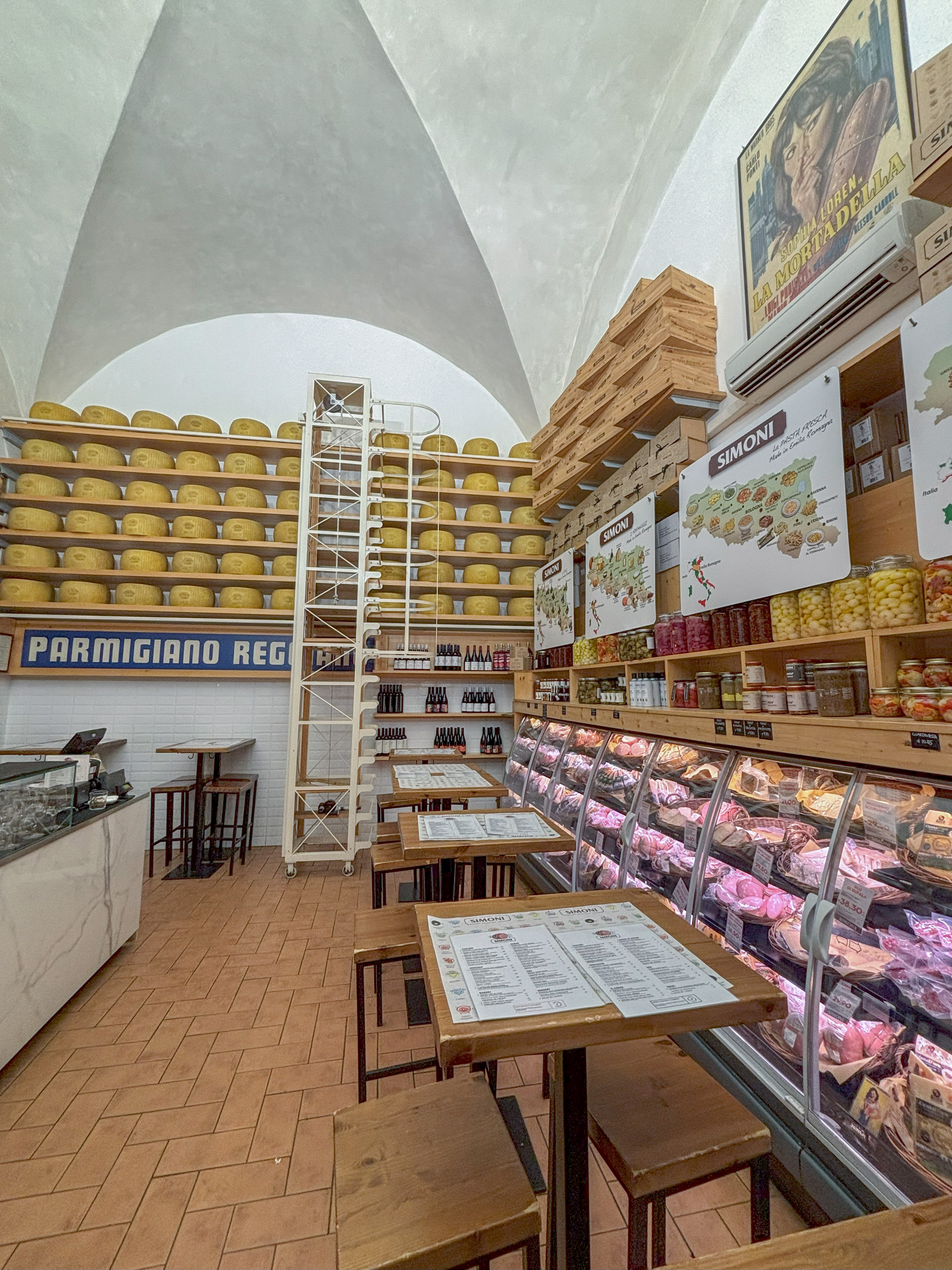 Salumeria Simoni ve Salumeria Simoni Laboratorio aynı sokakta bulunan iki şarküteri, biz açık alandaki masaları çok keyifli göründüğü için Laboratorio’yu tercih ettik.